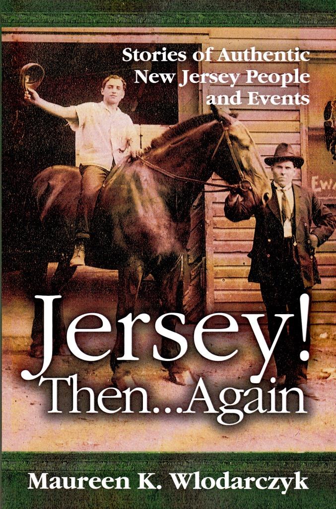 Front Cover Scan Compressed  Jersey!  Then . . . Again  There’s no place like Jersey . . . today and in the past.  Maureen Wlodarczyk’s collection of 36 unique, quirky and just plain interesting short stories about authentic New Jersey people and events spans the period from the early 1800s to the 1940s.  New Jersey’s own favorite historian, Thomas Fleming, had the following to say about Jersey! Then . . . Again:  “an historical treasure trove which no one who lives in New Jersey – especially in Hudson County – should miss.  Stories range from wild-eyed suffragettes to daring hot air balloonists to patent medicine con-man “Dr.” O. Phelps Brown to forgotten political titans like Simon “King” Kelly of Weehawken.  This book is a ticket to a magical time machine that will make you the best storyteller in your family overnight!”  Hurricanes, windmills, theatre, military heroes, Irish boxers, the birth of competitive baseball, Titanic survivors and more – it all happened in Jersey, believe it or not!