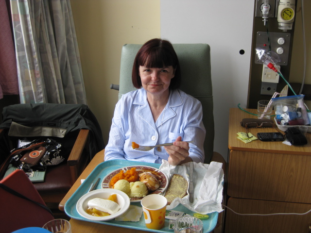 Downside of my cozy spot near the TV and windows? The shared loo was at the opposite end of the ward and so the days were punctuated with the rhythmic sound of crutches and walkers tapping the floor as the walking (and hopping) wounded of the ward made the slow trek there. I should also mention that there were no bedside phones in the ward, matter of fact, there were no phones at all. Not a problem as all the ladies (of all ages) had their personal “mobiles” at the ready, and ringtones, sometimes dueling ringtones, wafted through the ward.