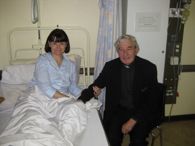 Ever aware of any opportunities for a captive audience, I soon had a steady flow of occupants in my guest chair where I regaled them with my Irish family story, warts and all. Among them was the handsome white-haired elder chaplain of the hospital. He sat patiently listening, his head almost imperceptibly nodding in response. He asked me when and where I used to talk with my grandmother about her Irish family and how I got her to tell me some of the painful moments of her childhood. Somewhere in our talking, I unconsciously wrapped my hand around his arm. It felt just right there. His visit ended (or perhaps his escape occurred) when a fellow patient (Peggy) who knew the Father as she had worked at Sligo General for many years, called out: “Maureen, give Father a few coins and he’ll be moving on. He’s always looking for donations for the hospice.” Father made not the slightest reaction to the comment, finished his thought and wished me well as he moved on to greet other patients in the ward.