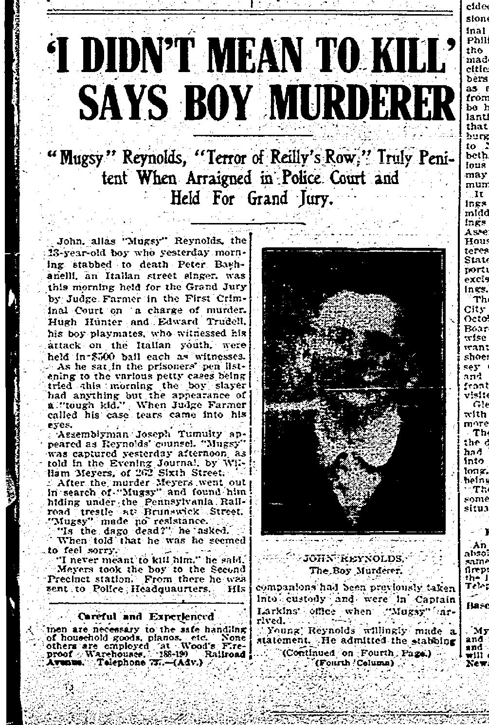 When called before the Judge, he asked Bridget when she left the workhouse. “Yesterday, sir,” she replied. “You made haste Bridget,” said the Judge. “It’s a bad job, Bridget.” “Yes, sir,” said Bridget. “But who wouldn’t when they’re kept up there for a month or so working for the county?” The arresting officer testified that he had picked Bridget up at 10pm the prior evening at the corner of Washington & Montgomery Streets (Jersey City) as she was quarreling with a group of boys gathered around her. He told the Judge that she turned her “batteries” on him with a barrage of abusive language he had never before heard uttered by a woman. Bridget said nothing until the sympathetic Judge asked her if he let her go this time, would she try to get a job. Brightening, Bridget said she could try. The Judge bade her depart in peace and try to sin no more. The Journal concluded that Bridget’s resolution wouldn’t amount to much as she was “a natural bummer and easy-going (jail) revolver.”